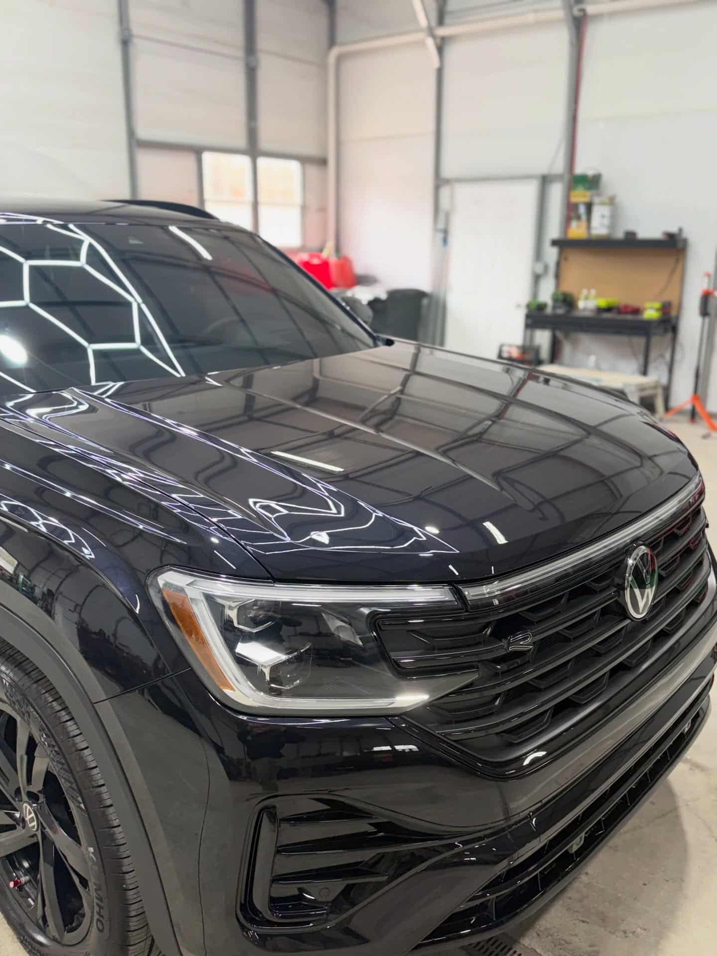 This black Volkswagen Atlas underwent a multi-stage paint correction to remove imperfections and restore depth and clarity across the finish. A professional ceramic coating was then applied to protect the surface from UV exposure, road grime, and everyday wear.